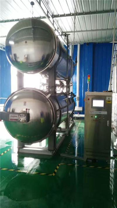 江苏南通全自动双层水浴1200*3600使用现场。用于鹌鹑蛋高温杀菌。
